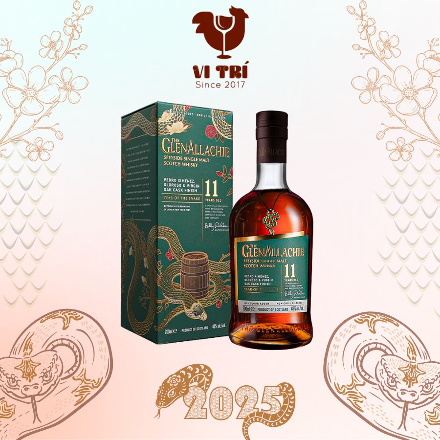 Rượu Glenallachie 11 Year Of The Snake là phiên bản đặc biệt được sản xuất nhân dịp Tết Nguyên Đán 2025, mang đậm dấu ấn của năm con Rắn trong lịch Trung Hoa. Đây là một chai whisky Scotch Single Malt của Glenallachie, nổi bật với chất lượng tuyệt vời và hương vị phức tạp, được ủ trong những thùng gỗ tuyệt hảo. Rượu có thời gian ủ 11 năm, đem lại sự hòa quyện tinh tế giữa các lớp hương vị mạnh mẽ và mềm mại. Hương thơm của nó là sự kết hợp giữa trái cây chín, mật ong, gia vị nhẹ và một chút khói mơ màng, tạo nên trải nghiệm đầy ấn tượng.