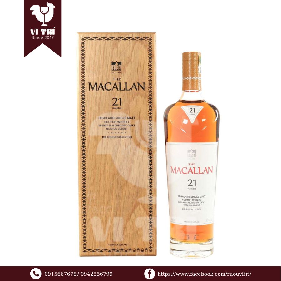 Macallan 21 Colour Collection là một phần của bộ sưu tập The Macallan Colour, được phát hành độc quyền cho kênh bán lẻ toàn cầu. Dòng sản phẩm này nằm trong bộ sưu tập gồm 5 loại single malt whisky từ 12, 15, 18, 21 đến 30 năm tuổi. Macallan 21 Year Colour Collection nổi bật với hương vị phong phú và màu sắc tự nhiên có được từ quá trình ủ lâu năm trong các thùng gỗ sồi Sherry, bao gồm cả thùng gỗ sồi Mỹ và châu Âu. Bộ sưu tập này không chỉ đánh dấu sự trở lại của rượu Macallan theo độ tuổi mà còn thể hiện sự tinh tế và độc đáo, lý tưởng cho những ai yêu thích trải nghiệm whisky cao cấp trong hành trình khám phá toàn cầu.